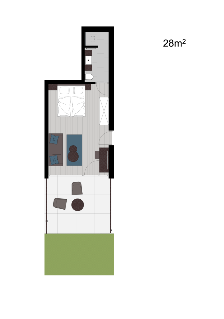 28 m² + 15 m² Terrasse