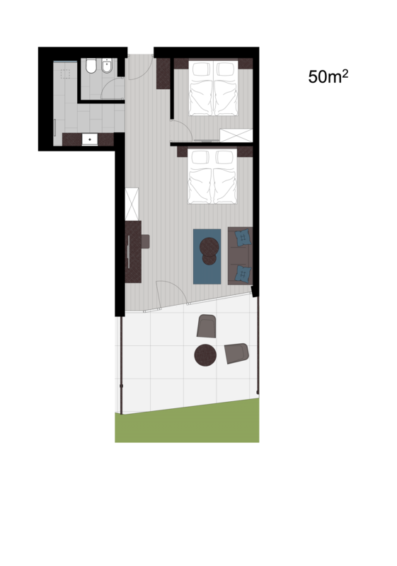 50 m² + 15 m² Terrasse