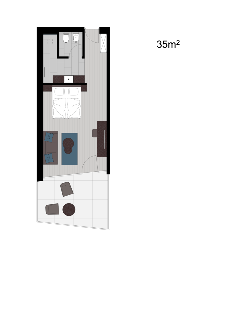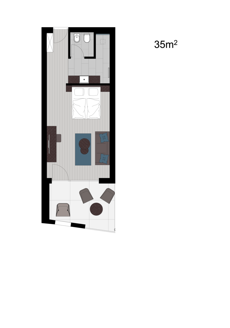 35 m² + 12 m² Balkon