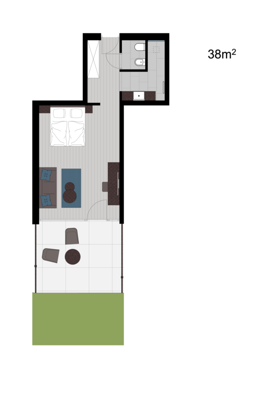 38 m² + 15 m² Terrasse